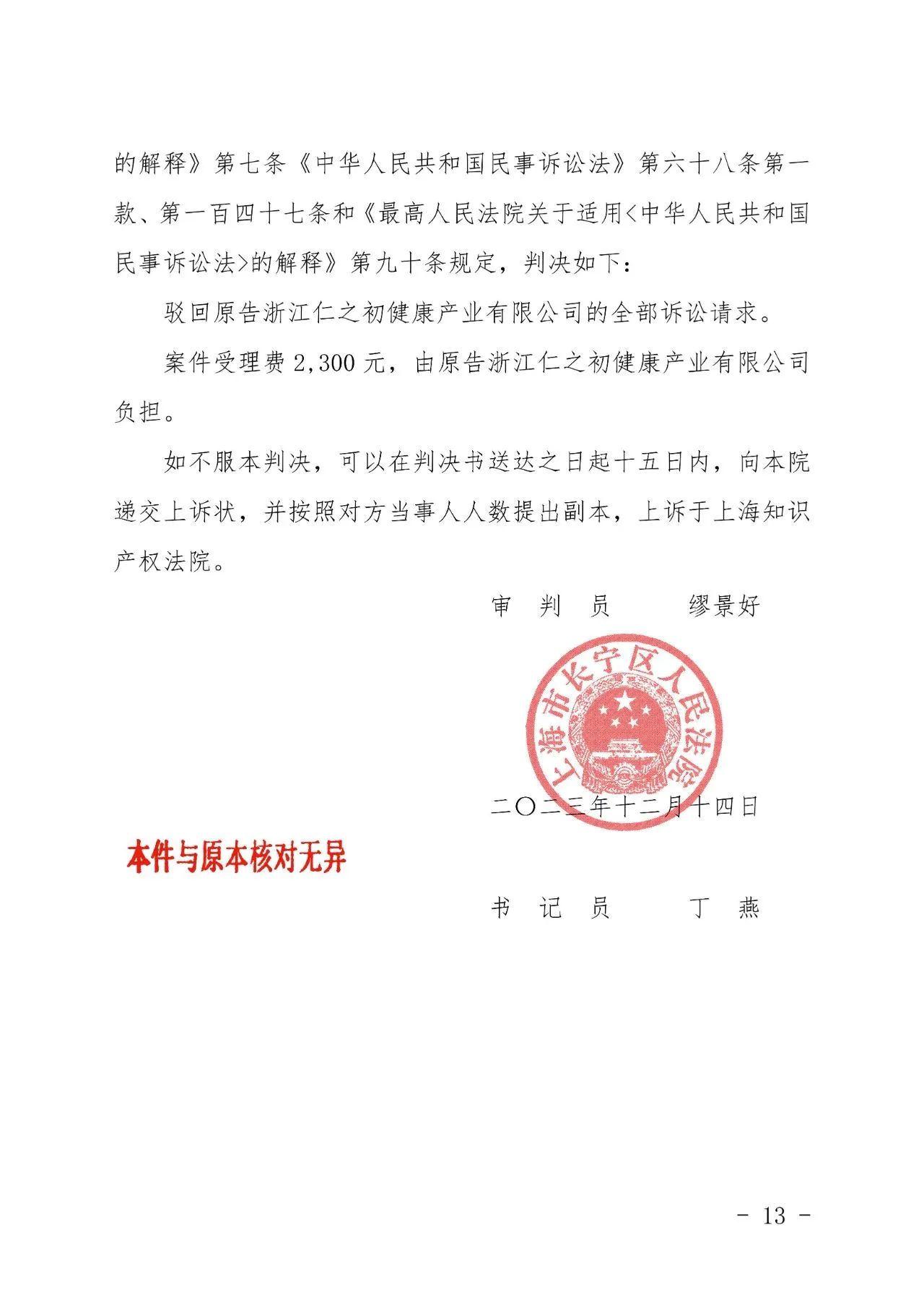 汕头辉知胜诉佳讯 | “仁之初健康”著作权及不正当竞争纠纷案,法院:驳回全部诉讼请求!